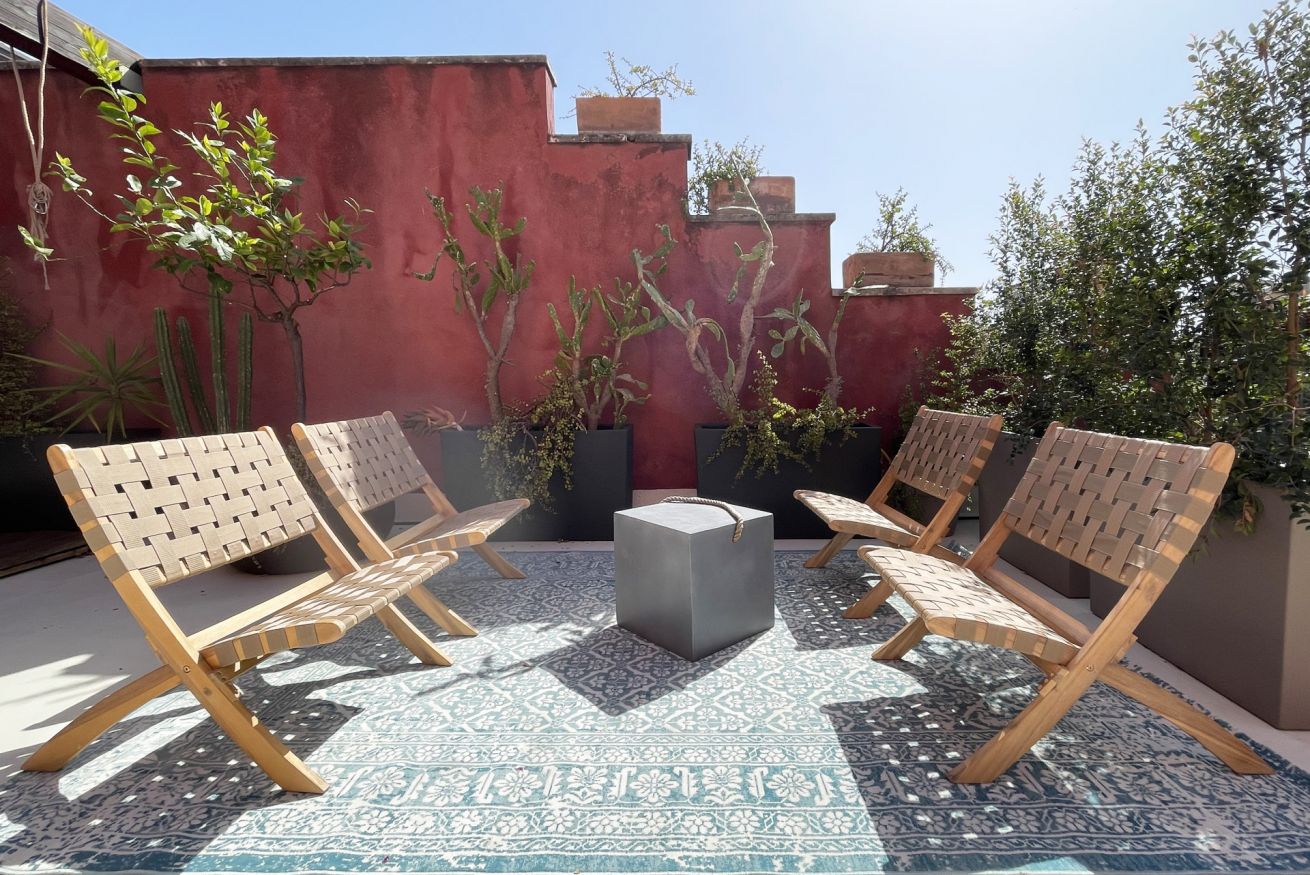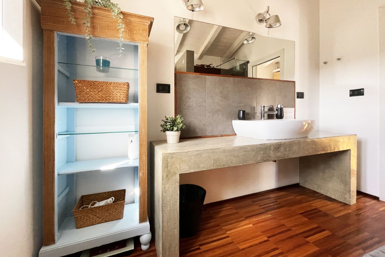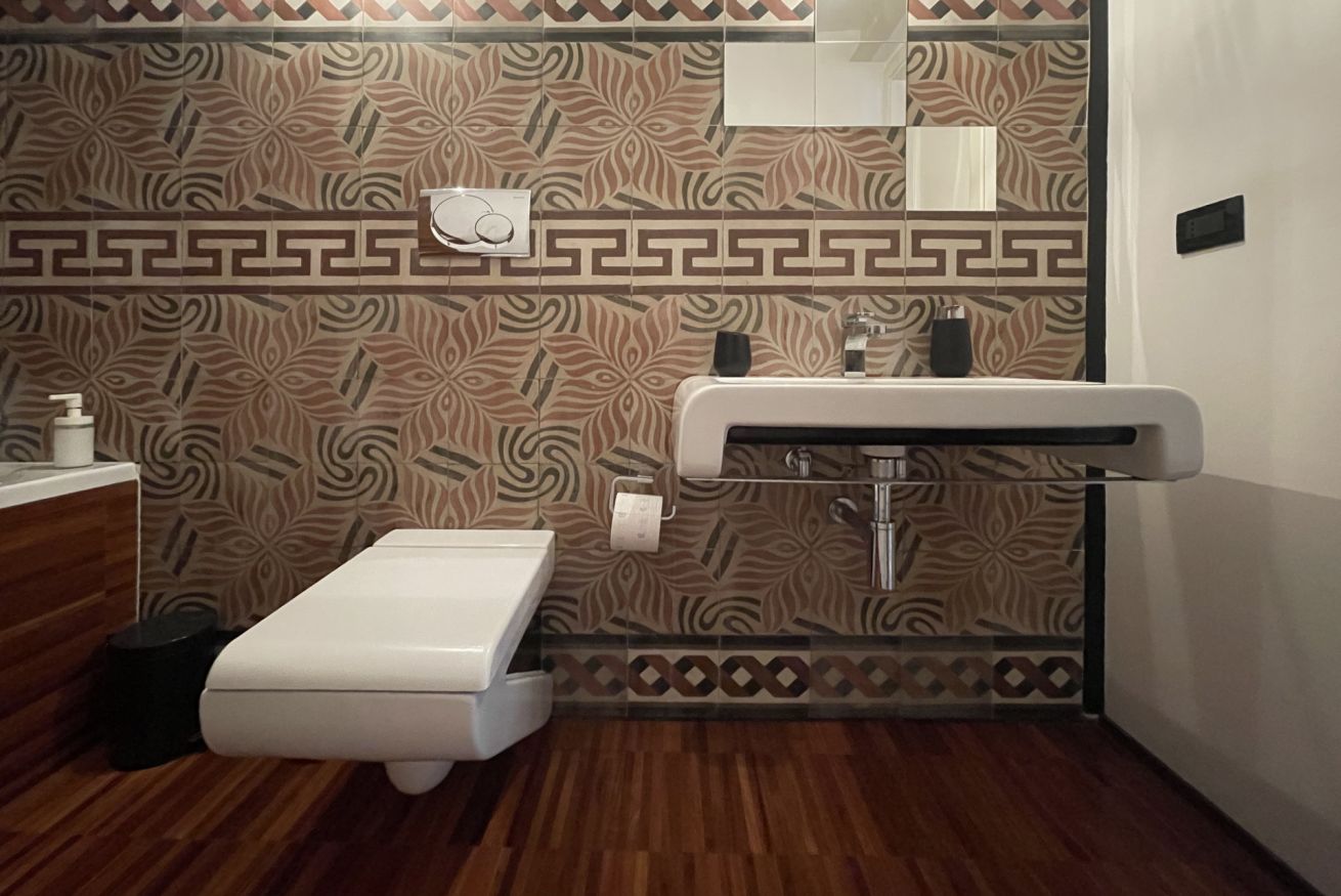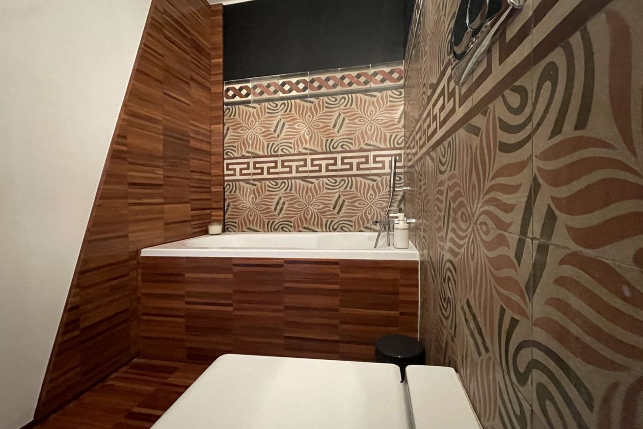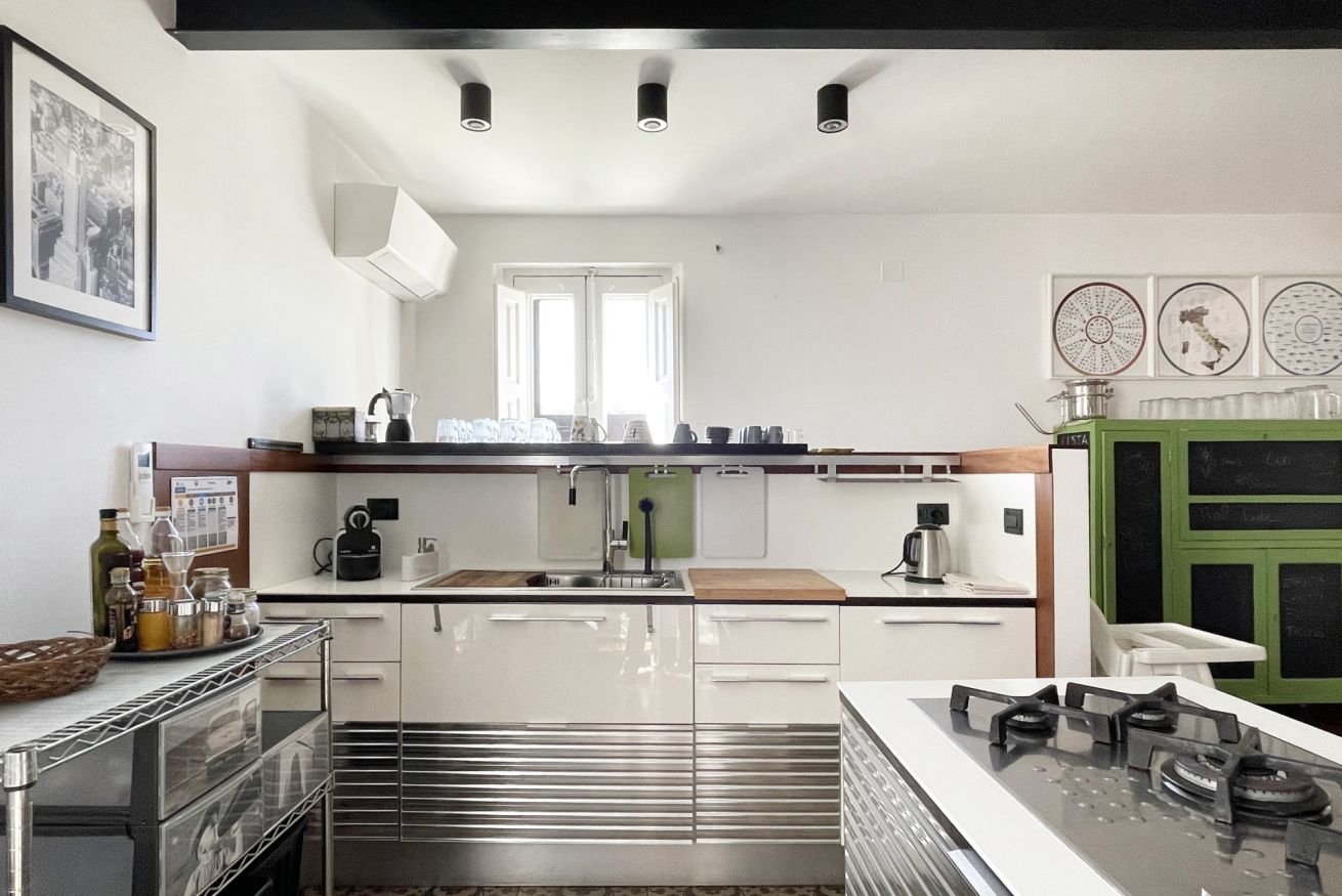 Located on the second floor of a building dating back to 1900, this apartment consists of two levels. The first level is wrapped around the roof garden and overlooks the medieval castle. An open space with a large living area, a lounge with a sofa and armchairs, an entertainment system (projector + surround sound system) and a dining area for six people. At the same level, there is an open entrance area, with direct views to the terrace and the castle, a large kitchen and a amazingly decorated bathroom. The "garden" is equipped with a teak table and benches / chairs that provide the ideal setting for dinners and for relaxing moments while sipping a glass of wine or reading a book in the hammock.
