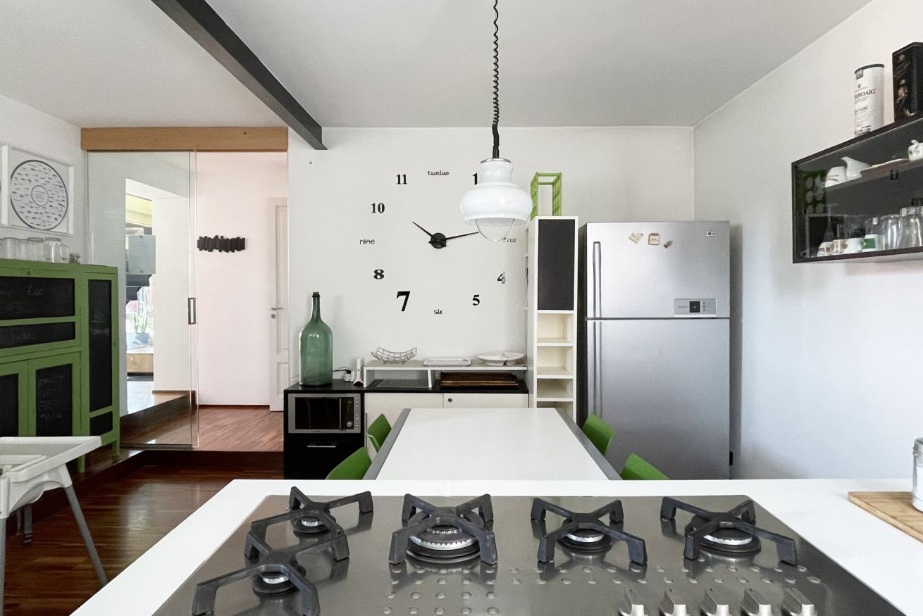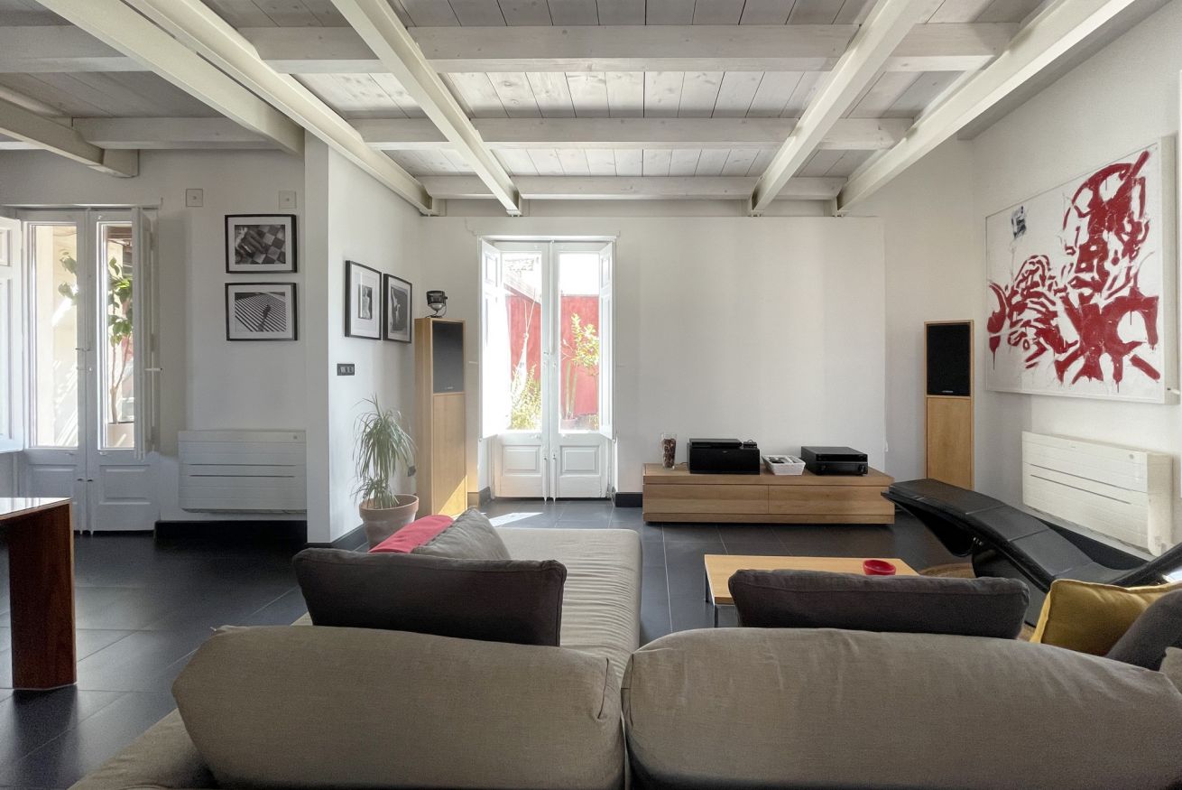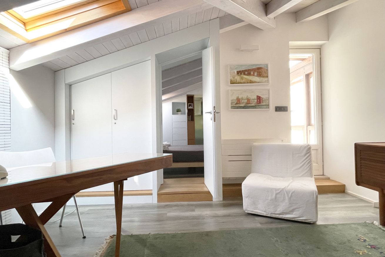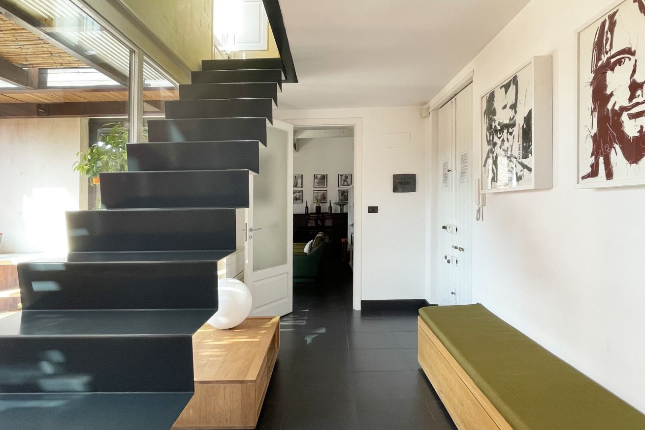 The penthouse is a concentrate of technology: fibre optic connections, electric skylight windows, high performant a/c and heating units controllable remotely, home theatre with surround system. The house is all insulated (walls and roof), has double glazing in all windows, and the EPC rate is A2.