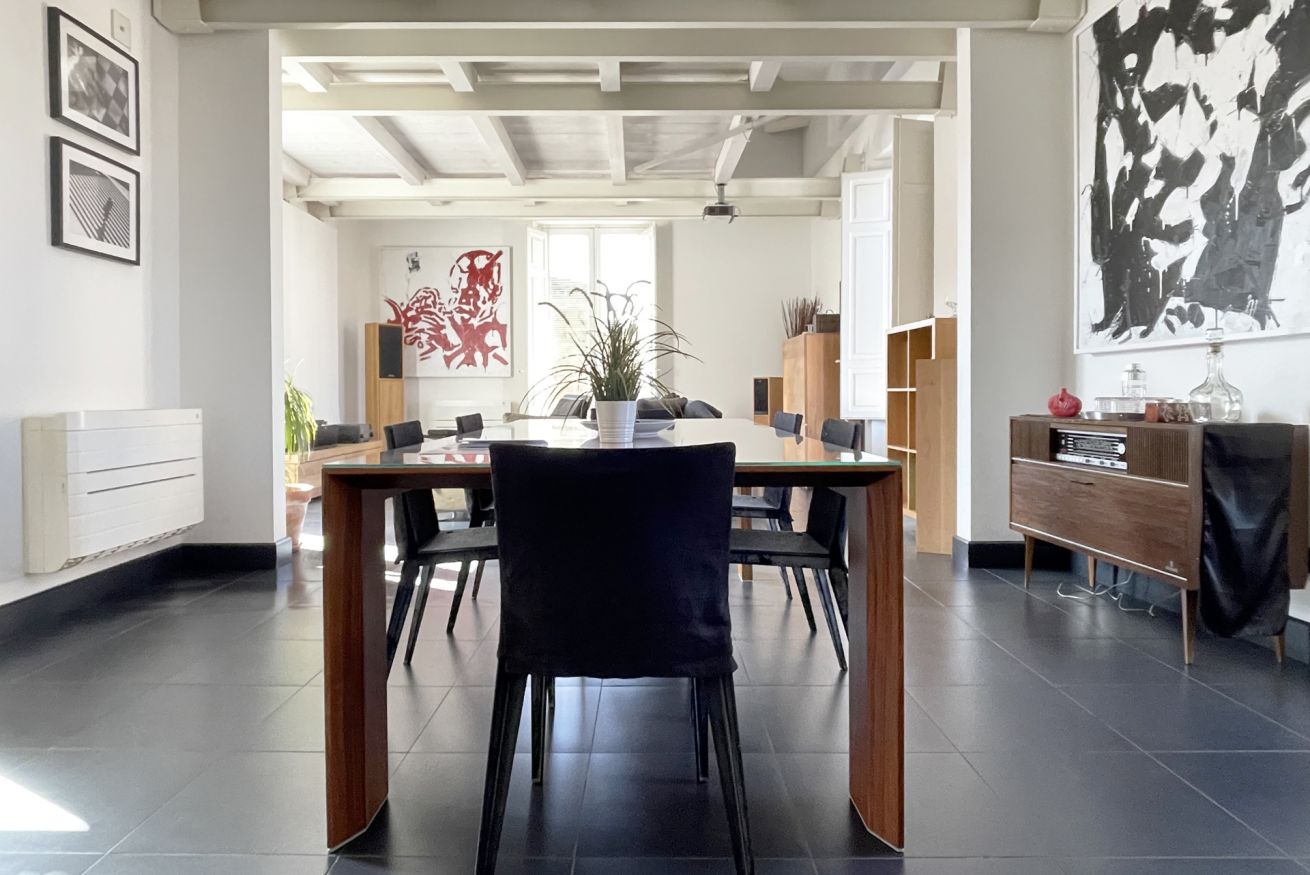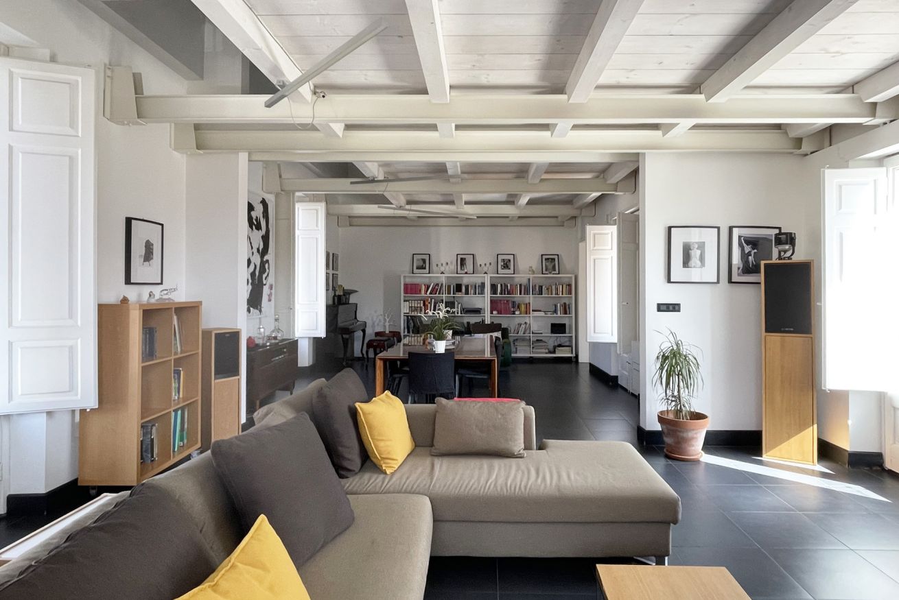 The penthouse has been renovated by the owner - who is an architect by profession - in a contemporary style, with high attention to bringing light, to the choice of materials and the decorative details. A mix of modern and traditional style with the intention to preserve the history and give a new vibrancy and a modern hint. All furniture is made bespoke designed by the owner or designed by famous international designers.